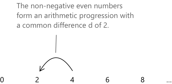Послідовність \( a_n \) називається арифметичною послідовністю (або арифметичною прогресією), якщо вона складається з чисел, розташованих таким чином, що різниця між будь-яким членом і попереднім членом є сталою. Вона характеризується членами вигляду: