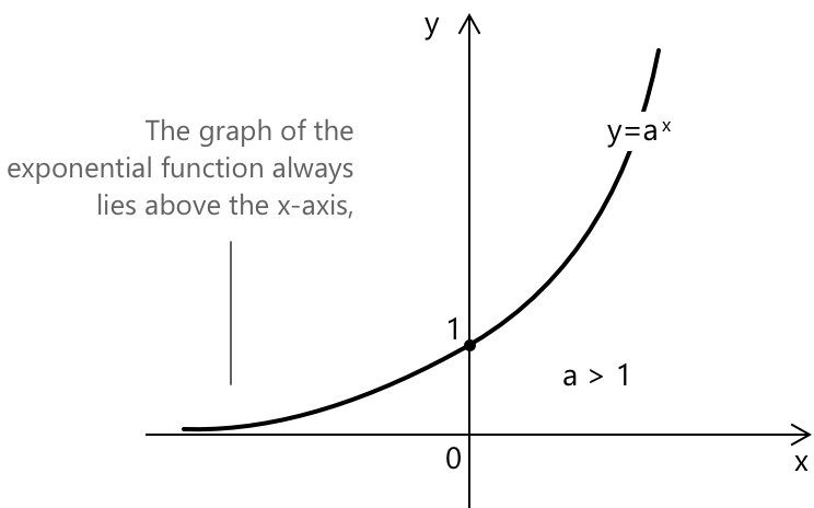 Нагадаємо загальну поведінку показникової функції, наприклад, коли \( a > 1 \).