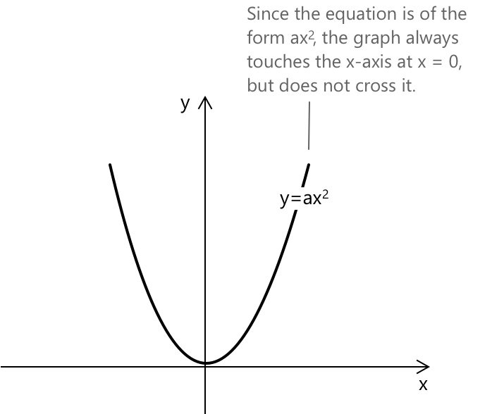 Графічно рівняння представляє параболу з вершиною в початку координат \((0, 0)\). Вона торкається осі x, але не перетинає її. Графік відкривається вгору, якщо \( a > 0 \), і вниз, якщо \( a < 0 \). Значення \(a\) також визначає, наскільки широкою або вузькою виглядає парабола.