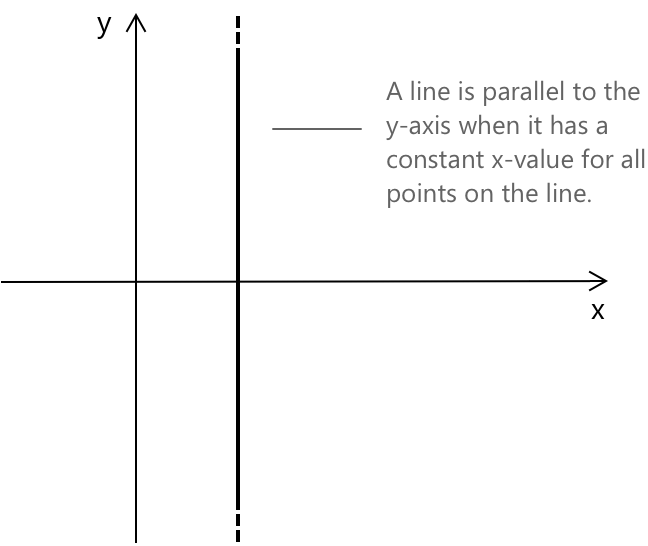 Пряма є паралельною до осі y, коли вона проходить вертикально і всі її точки мають однакову координату x. Цей тип прямої не зміщується вліво чи вправо при русі вгору або вниз. Вона залишається суворо вертикальною. Її рівняння: