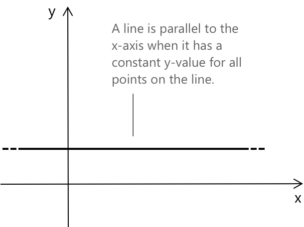 Пряма є паралельною до осі x, коли вона проходить горизонтально і всі її точки мають однакову координату y. Цей тип прямої не зміщується вгору або вниз при русі вліво чи вправо. Вона залишається суворо горизонтальною. Її рівняння: