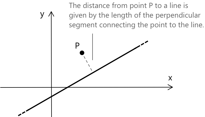 Цей вираз дає найкоротшу відстань від точки до прямої, тобто перпендикулярну відстань, а не довжину будь-якого довільного відрізка.