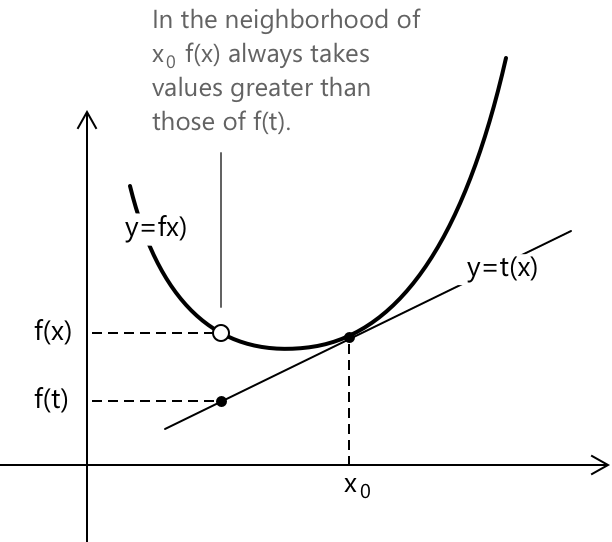 \[ f(x) > t(x) \quad \forall x \in I – \lbrace x_0 \rbrace \]