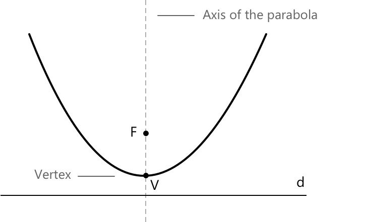 Парабола — це плоска крива, визначена як множина всіх точок, які рівновіддалені від фіксованої точки \(F \), що називається фокусом, і фіксованої прямої \( d \), що називається директрисою.