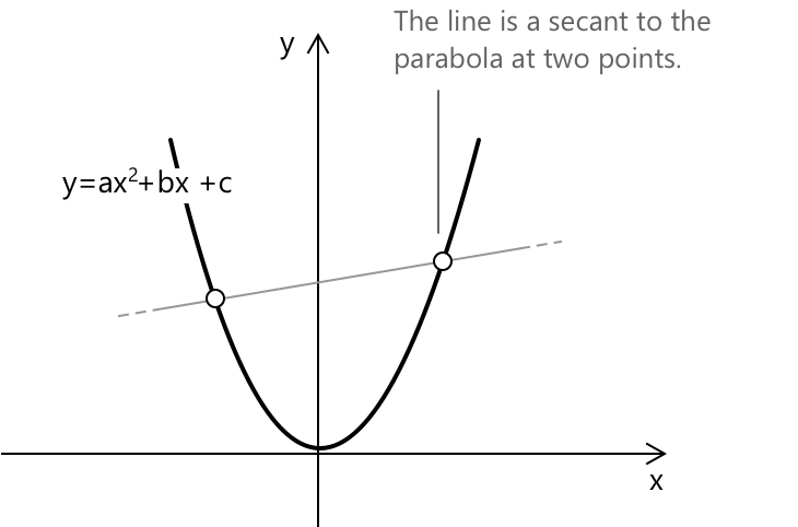 Нижче наведено зображення січної прямої, що перетинає параболу у двох точках.