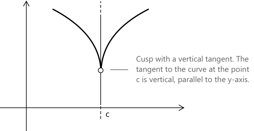 У випадку, показаному на рисунку, ми маємо: \[ f_{-}’ \left( c \right) = -\infty \quad \text{та} \quad f_{+}’ \left( c \right) = +\infty \]