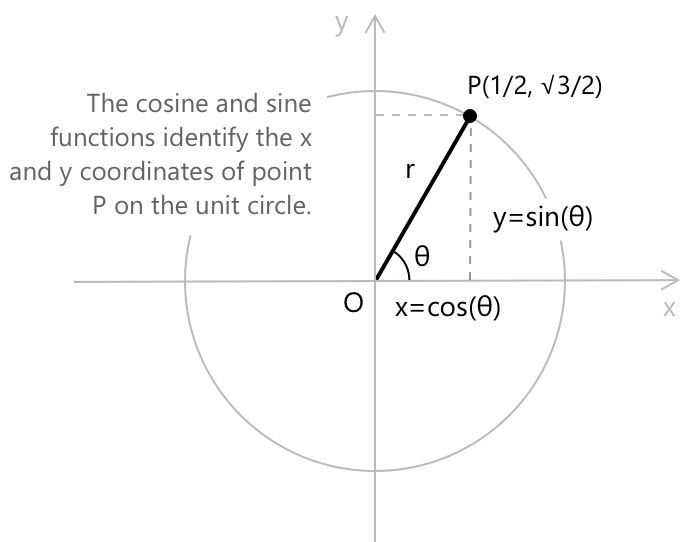 Відповідна точка на одиничному колі, отже, має вигляд: \[ P\!\left(\frac{1}{2},\, \frac{\sqrt{3}}{2}\right) \]